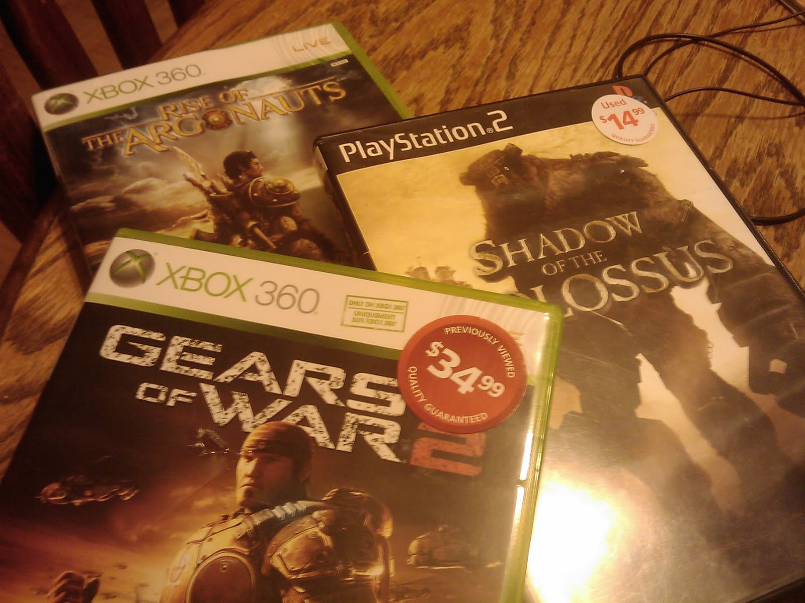 In no way do I need more games…really I don’t, and with Dragon Age dropping on tuesday I REALLY don’t need more games. But I was at Roger’s Video and the had a 50% off PS2 sale, a 30% off used x360 sale and a buy one get one free sale, end of the day I got Gears of War 2, Rise of the Argonauts and Shadow of the Colossus for the grand total of 38 dollars taxes in! That deserves a woot!