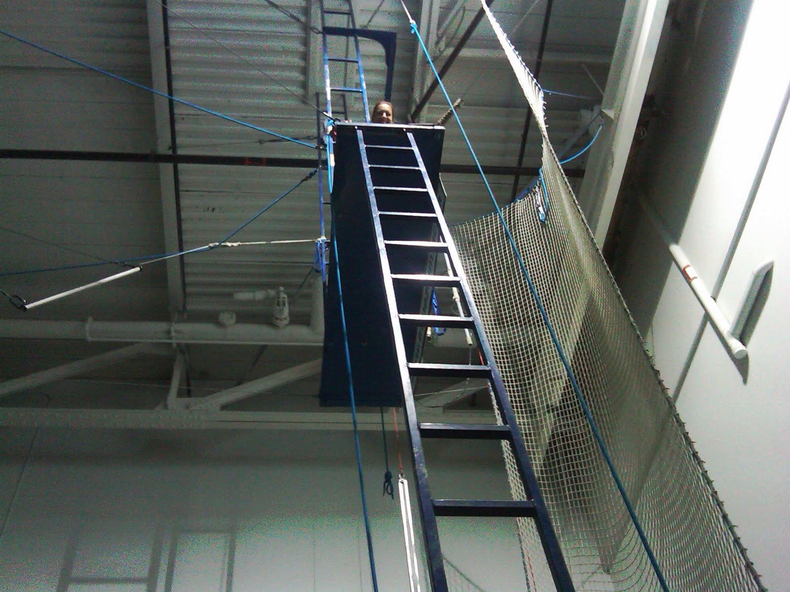 There is a company in Montreal called Trapezium that will teach you to fly through the air with the greatest of ease. Well they make it look easy, but it was very hard. The stage was set with a safety net, a platform 25 feet up and a small ladder. Equipped with safety gear I was the first to go up and try this out.