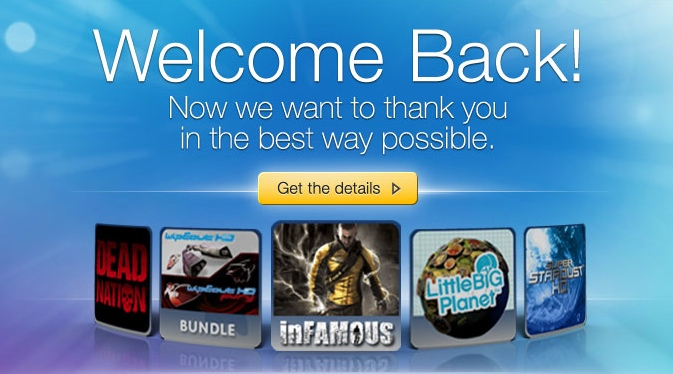 First off I do appreciate that Sony is giving something away as an apology for the severe outage sustained last month. What I do not appreciate is that the welcome back program is obviously targeted to casual PlayStation users instead of the loyal or hardcore fans like myself.