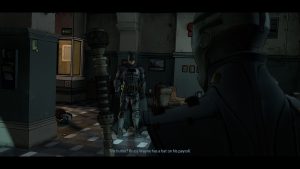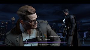 The premise of Batman – The Telltale Series is to show both sides of the character, giving equal focus to Bruce Wayne and Batman in. As the series progressed choices and actions were carried out as either Bruce or Batman; in fact in a few instances you could choose who would solve the next challenge. I like this twist. If a gentle personal touch were needed, Bruce Wayne was the choice; if a strong presence and some violence were needed, acting as Batman was the right move.
