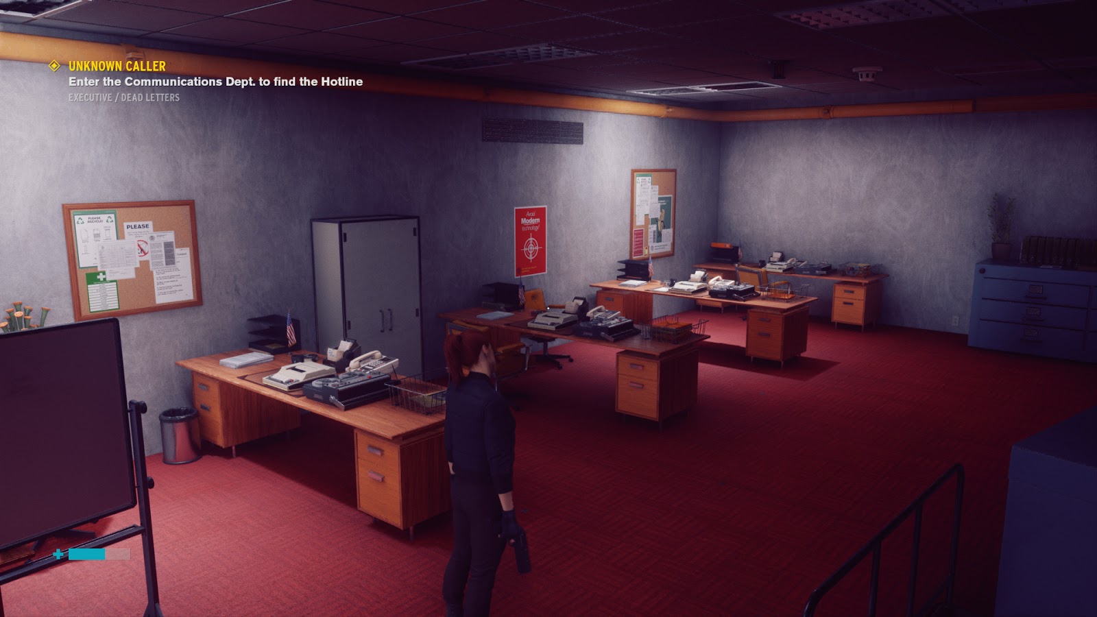 Inexplicably, I find myself at an office for the Bureau’s director having met no one but clearly there are signs of struggle and messages of a lockdown flash on all the screens. This seems to be a building out of time; she tells me it is a building out of place, whatever that means.