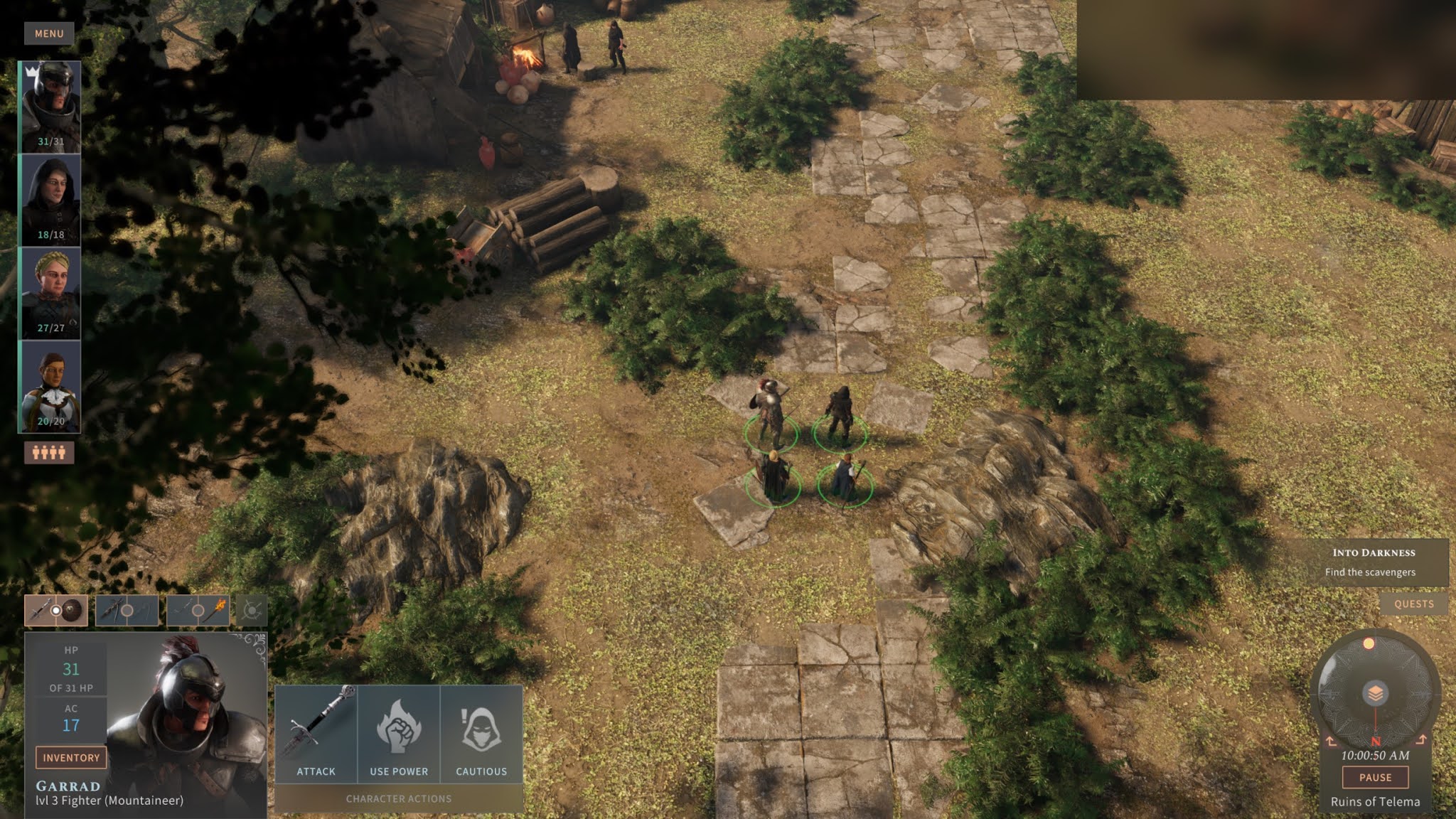 Booting up the demo dropped me into the campaign as it was in progress with pre-generated mid-level characters. Fitting the standard archetypes of Rogue, Fighter, Cleric and Wizard I set off on the short demo adventure to find a missing scavenger captured by Orcs.
