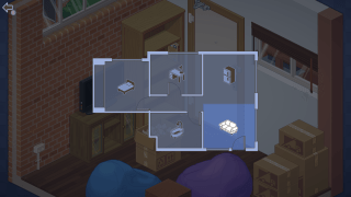In Unpacking the main goal is to move from room to room unloading boxes and places items in the best possible spots. The game starts with a single room and eventually spans full houses/apartments. The true magic of the game is the consistent items that move from home to home and the challenges that arise to make the space work as her life situation changes.