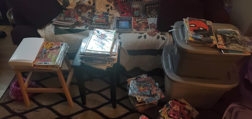 I used to collect comic books in my teens and since then they have been sitting in bins, moved from house to house. Every blue moon I grab one or two more, but at my peak for a few years I had weekly pickups of a number of titles.