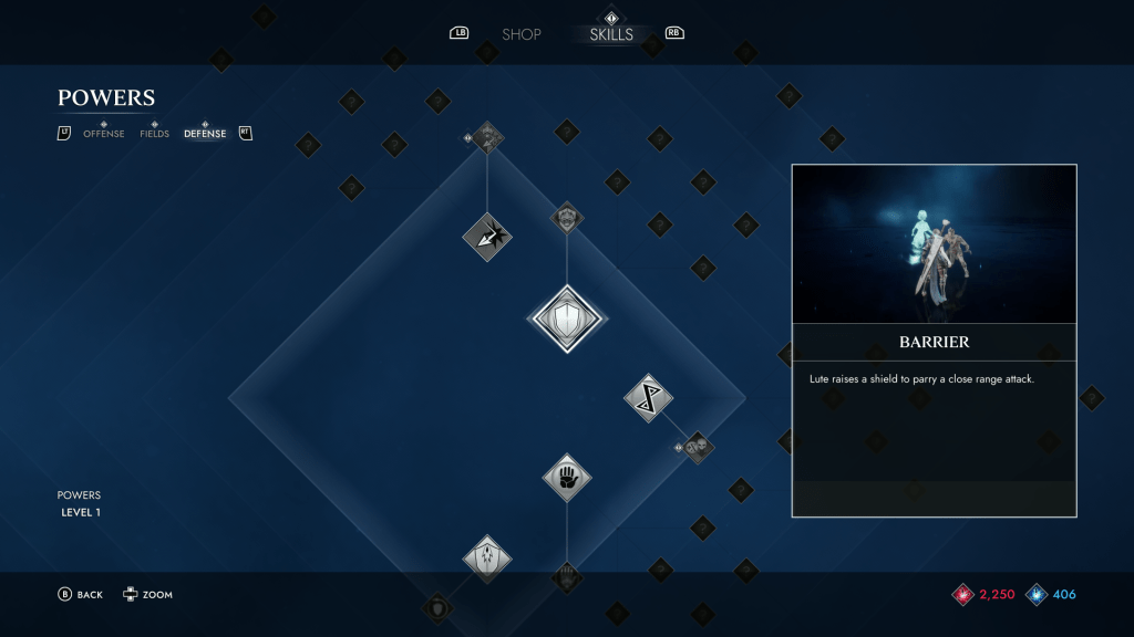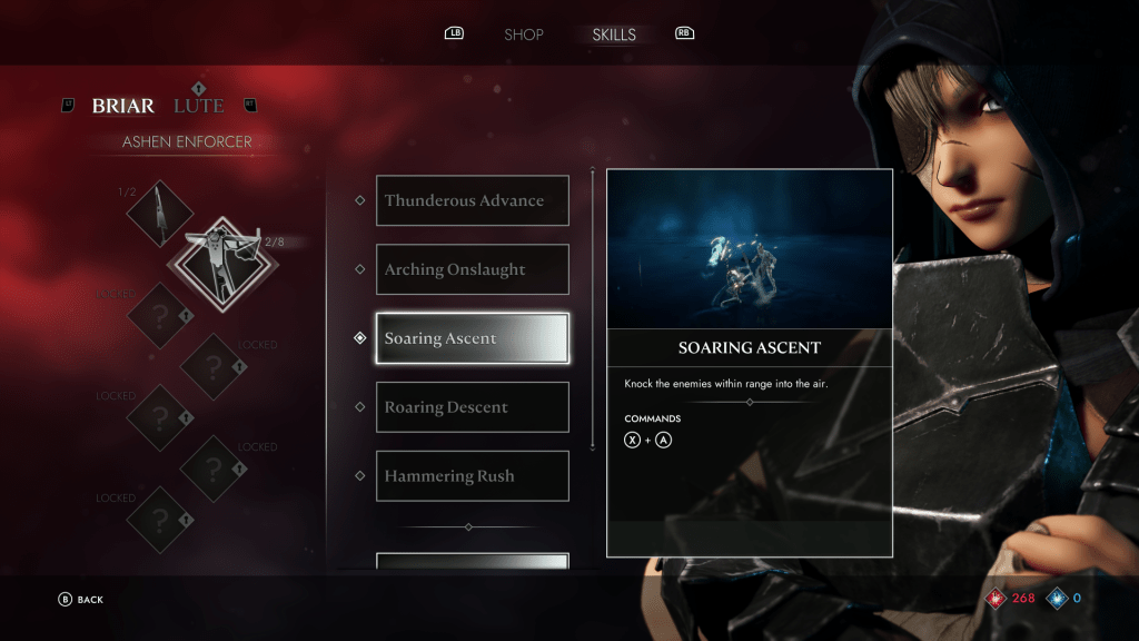 In the case of Briar and Lute they each have their roles and in Soulstice, both are controlled at the same time. Briar is the main controllable character and gets an expanding roster of weapons and attack to leverage but I found Lute’s skill arc to be much more interesting.