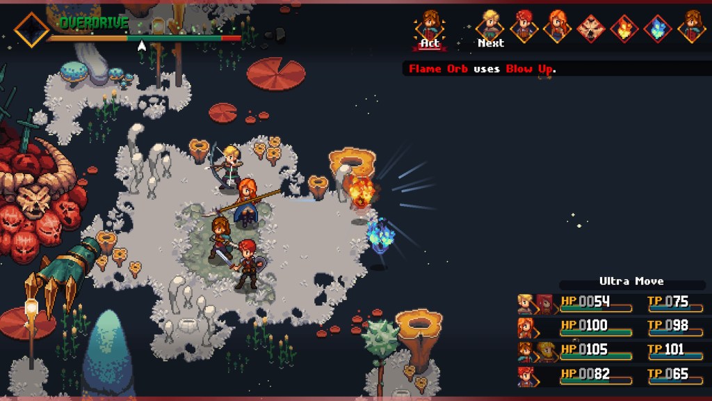 What truly impresses me about Chained Echoes is all of the annoyances they removed from the standard JRPG experiences. Characters move really fast so traversal is actually enjoyable. There are no random encounters (aside from story based ones). The map is actually usable, load times are minimal, fast travel is easy, items are easily spotted and collected but most importantly when battles are lost the encounter can be restarted instead of being punted to a save point. The icing on the cake is the fact that all health and TP points are restored after each battle.