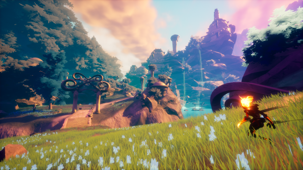 The game is a very interesting mix of the calming exploration game Journey, melded with some action sequences and platforming. The key mechanics revolve around parrying attacks while matching the color (red or blue) of the enemies who switch between states often.