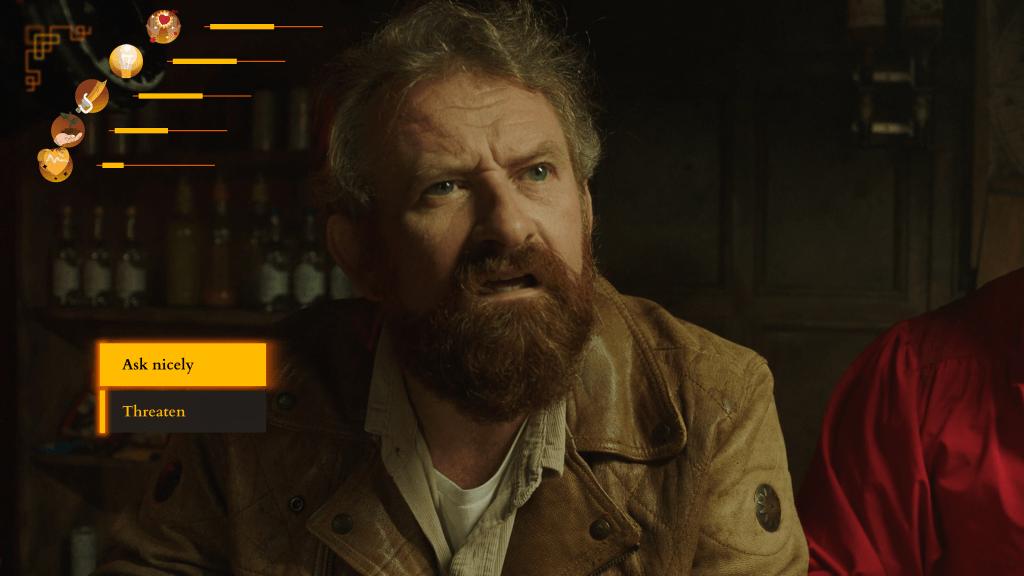 Quickly introduced to Marshanda, waking up out of time and her run in with lead character Mia, a down on her luck barmaid looking for adventure the ‘game’ starts with some fairly well produced and acted scenes. Once the movie starts in earnest the light gameplay aspect of Mia and The Dragon Princess is unveiled, choices to key scenarios, much like a choose your own adventure book.
