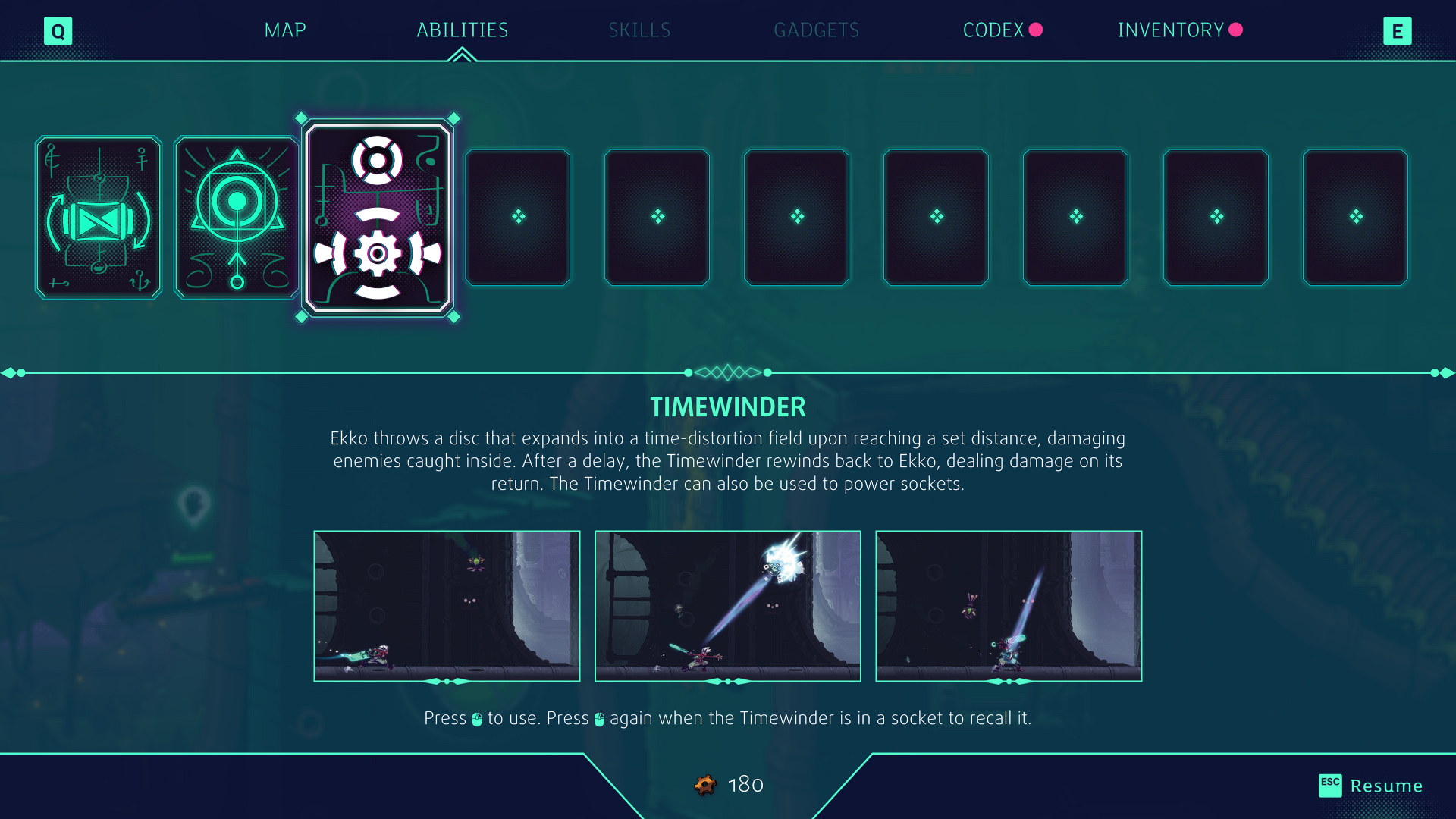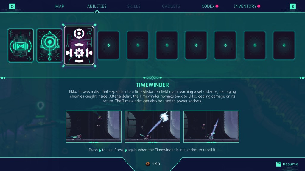 As his main set of skills revolves around the manipulation of time Ekko’s zero drive is the most important aspect of the game. It develops over the course of the game but essentially time can be slowed in sections, rewound, items locked in time and various other functions that are fun to use and experience.