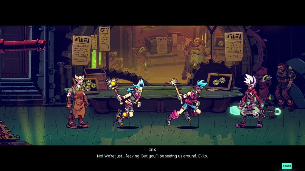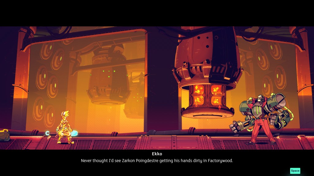 What really clicked with me in this game is the characters, interactions and story beats. As Time Travel is at the centre there is some really neat twists in the story that I found very cool, in particular a groundhog day style sequence that had Ekko re-trying a conversation multiple times.