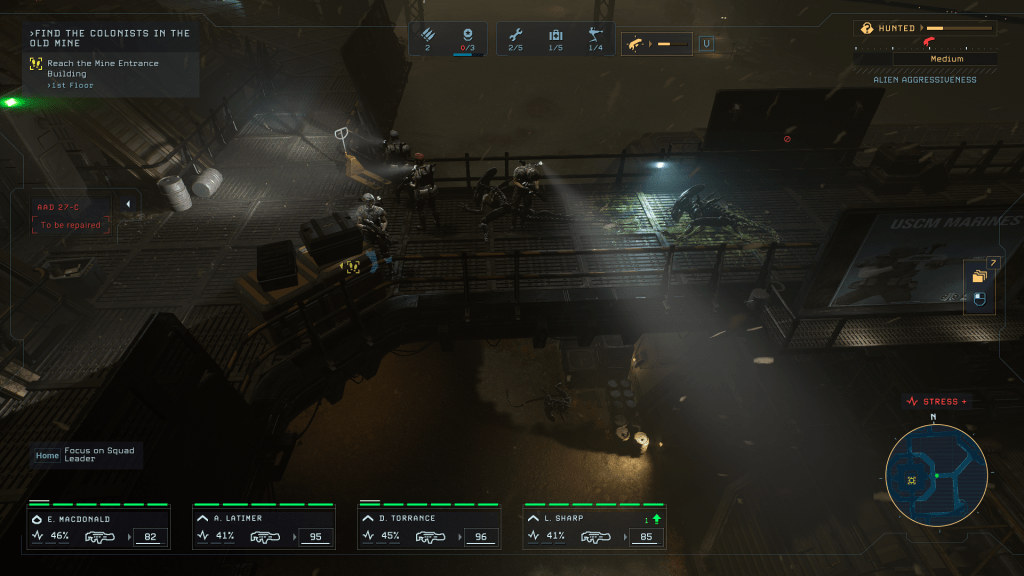 The environment as well becomes more hostile the longer the marines are deployed, with hunts, mass attacks and heightened alien presence growing over time. The game is designed for the marines to regroup, level up, restock and redeploy.