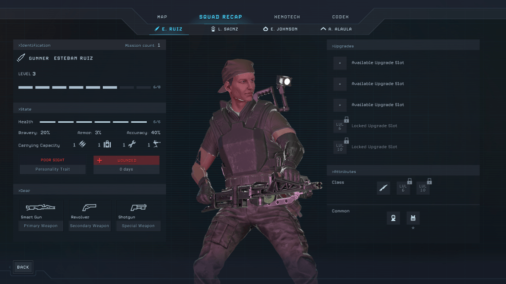 An interesting wrinkly in Aliens: Dark Descent is that a mission does not have to be completed in one deployment. As enemies are encountered the marines experience stress, trauma, wounds and may even be knocked unconscious.