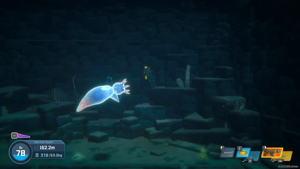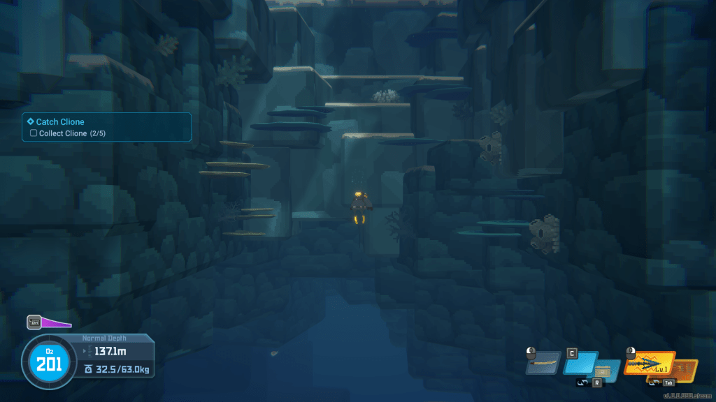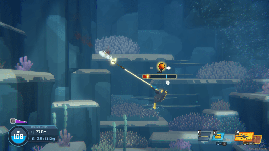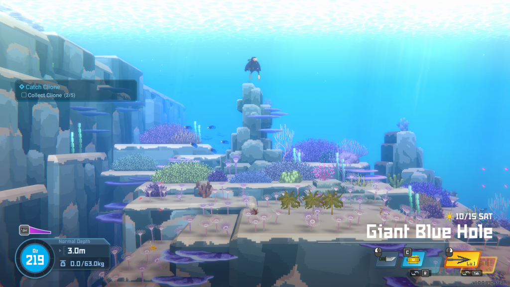 In the diving world Dave begins very simply with a harpoon and knife catching fish in relatively shallow stretches of the blue hole. As the game progresses new tools, guns and upgrades to gear make the depths of the blue hole reachable and many new creatures experienced and encountered.