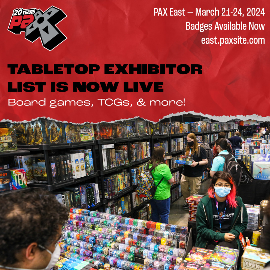Cardboard and polyhedron aficionados rejoice! The Tabletop Expo List for #PAXEast 2024 is now live at http://PAXEast24.com/TabletopExpo. Stay tuned as the full exhibitor list will be revealed soon.
