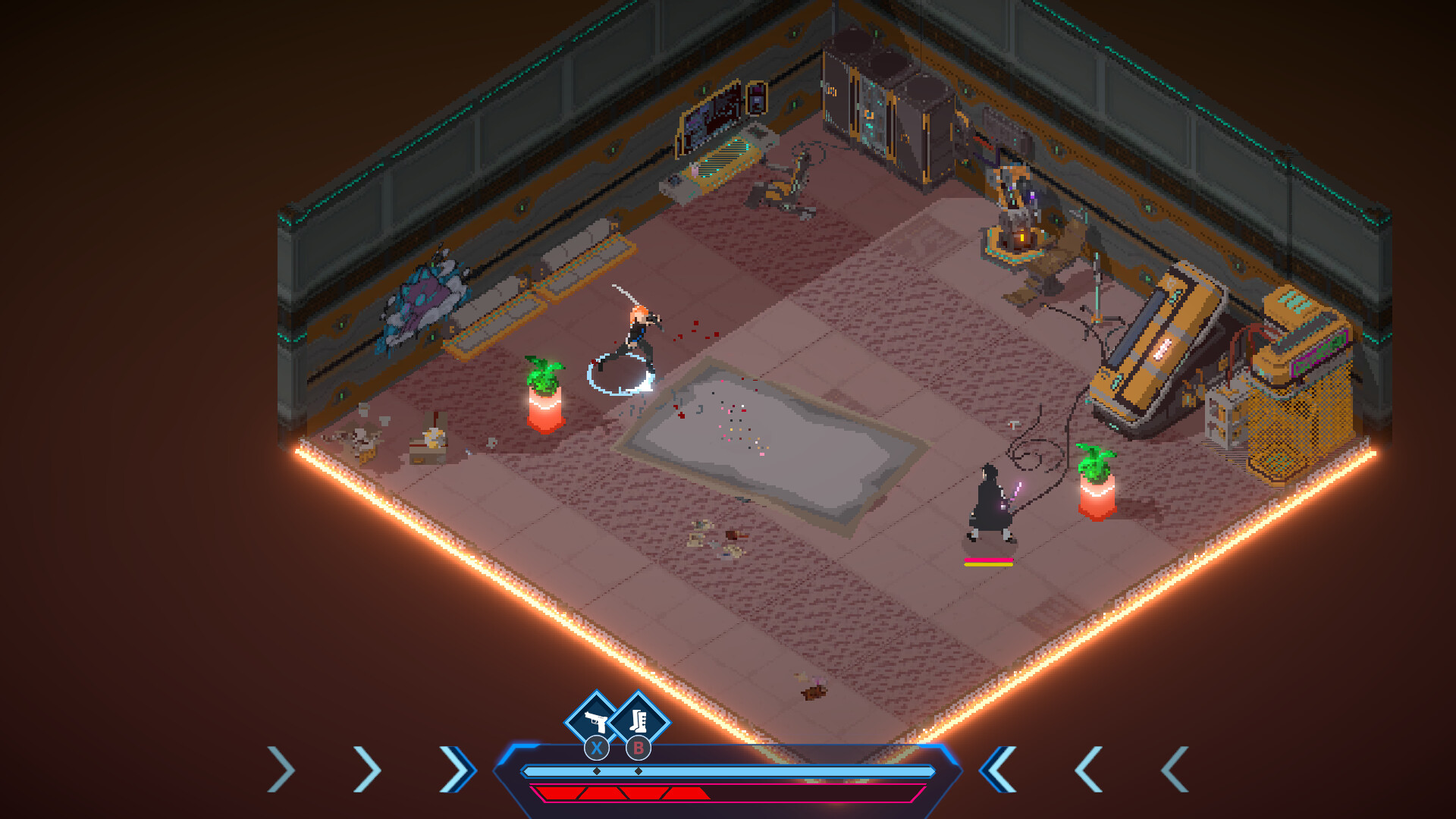 The demo is essentially a tutorial level where skills are slowly handed out so the mechanics can be mastered. Hear the music, time the beat and slice, parry, kick or shoot enemies if successful. Miss the beat and you take damage, this results in quick deaths if you can’t keep up with the music.