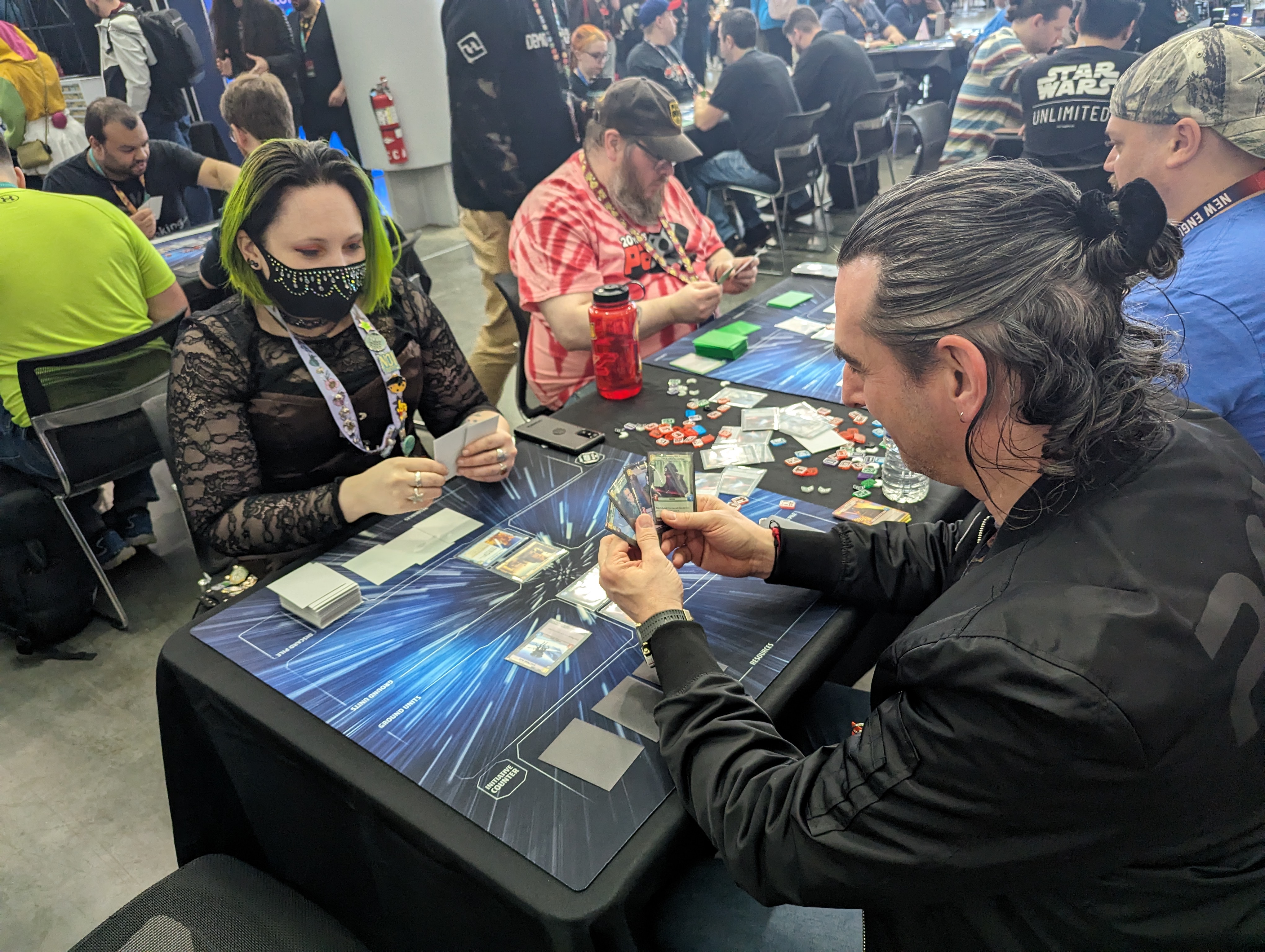 While I spend a good deal of my time at PAX east checking out new digital games there is always time to experience some great tabletop or Collectible Card games. Wandering the hall I stumbled on a newer game called Star Wars Unlimited, there was a spot open so I sat for a tutorial and match.