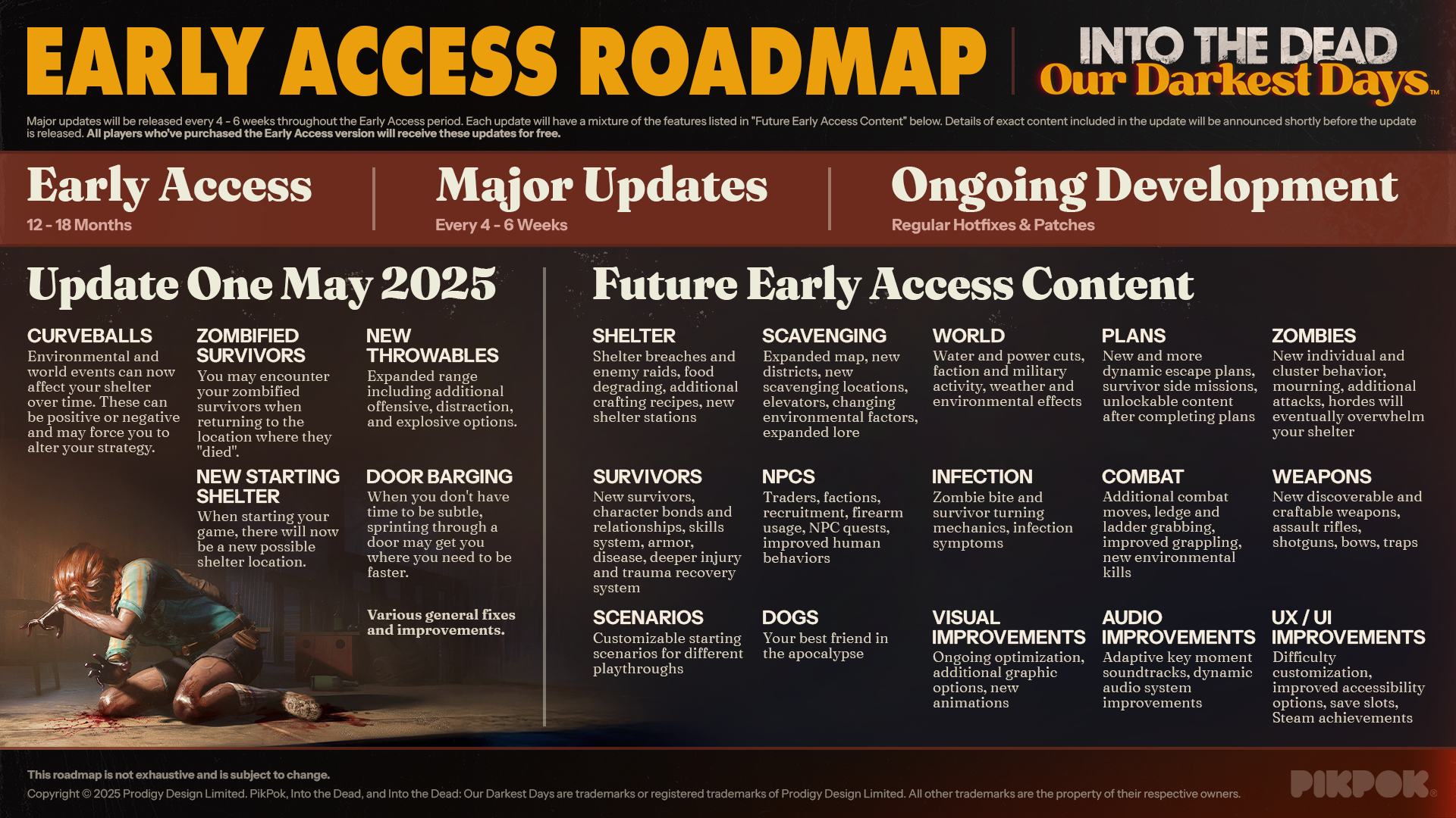 The developer has published a lengthy roadmap with regular planned updates enhancing the game until the 1.0 release after 12-18 months in early Access. The planned additions sound very interesting and will add a lot more depth to the already enjoyable experience. Well worth checking out and I still play daily trying to discover everything Walton has to offer as I gather survivors and build up my base.