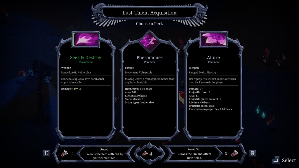 The lack of a narrative here also hurts the game as there is different characters from the Deadly Sins like Lust, Wrath and Gluttony that assign powers from their catalogue to choose from. Again there could have been more Hades influence here with banter and dialogue added to spice up this part of the game, but nope, just a well drawn portrait and a list of powers.