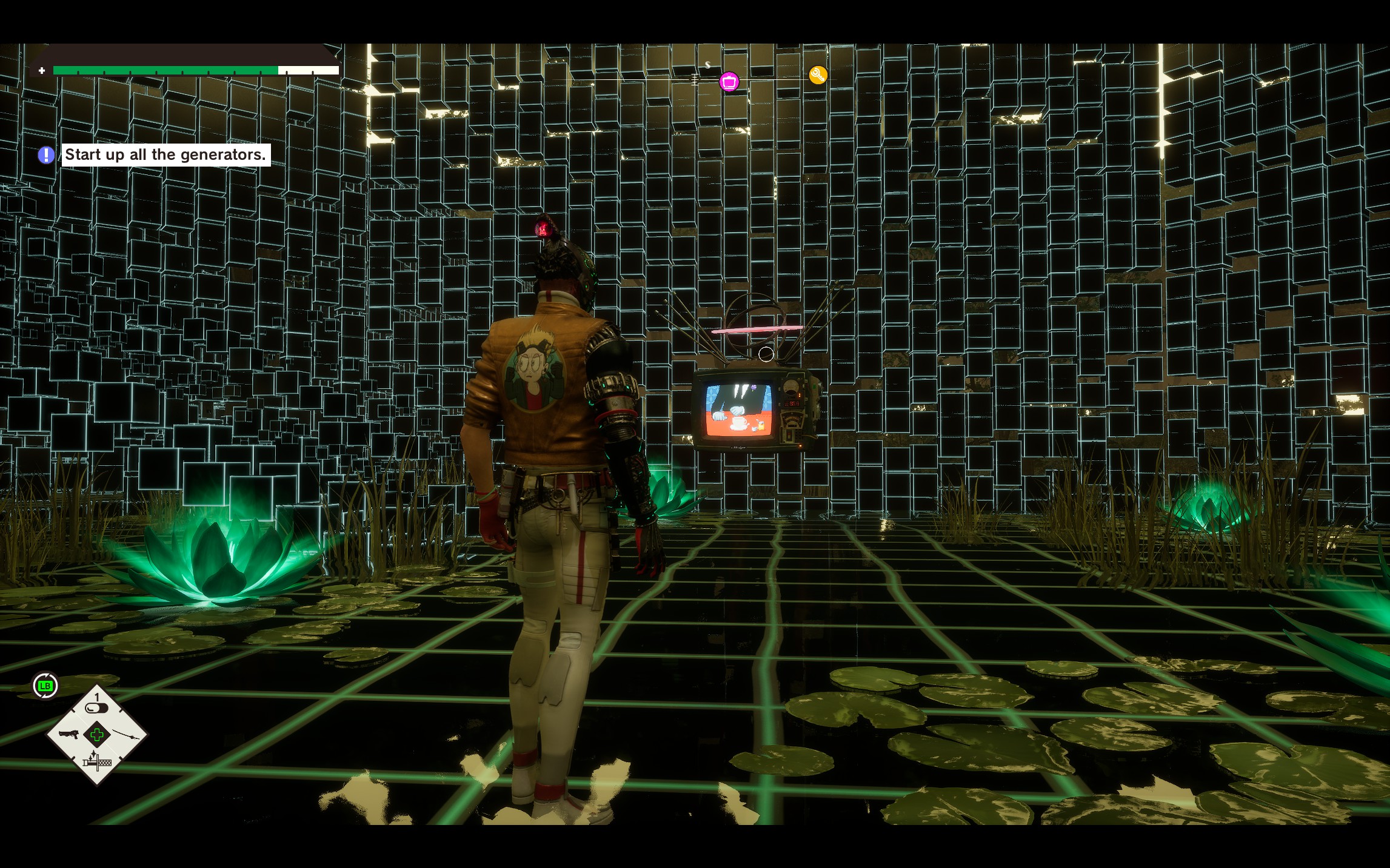 When Romeo lands in a new world, after a short minigame navigating the space-time FBI ship, he starts exploring the world, fighting hordes of zombie like humans, mutated creatures and some large abominations. Armed with a melee and ranged weapon Romeo is able to execute combos of light and heavy attacks, charged up attacks and blast enemies from a distance with his gun.