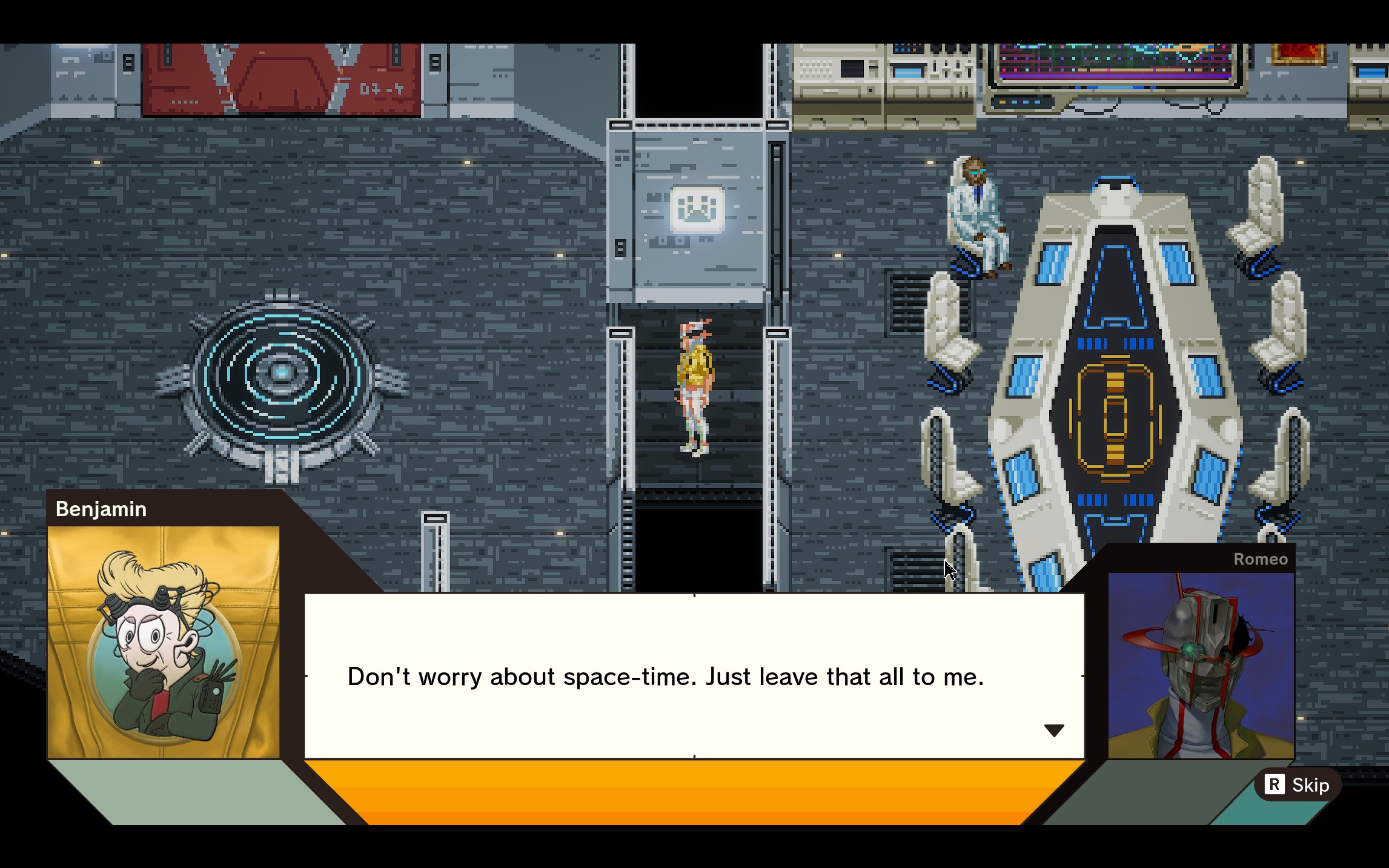 As far as side gameplay ROMEO IS A DEAD MAN is loaded with optional and secondary paths to explore. Non-critical anomalies can be explored and act as dungeons to complete for rewards and perks. The FBI ship, which hilariously is presented in a pixel art style, has a number of mini games and rooms to explore and the crew can be interacted with for story beats, odd conversations and of course cook in the galley with your mother, who just happened to join the crew once Romeo was drafted.